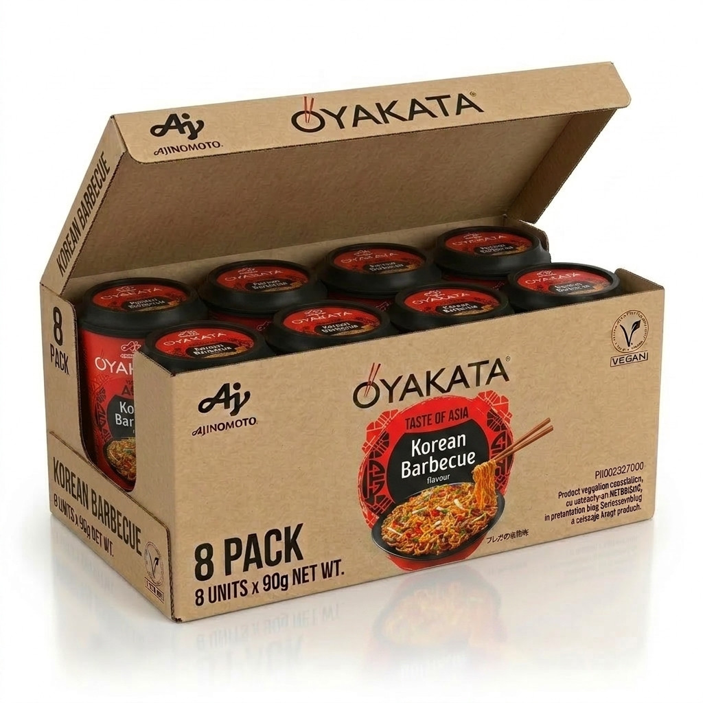 Idézze fel a koreai utcai sütögetések hangulatát az Oyakata Korean BBQ tésztával! Ez a 8 darabos gyűjtőcsomag a sült húsok füstös aromáját, a fokhagyma karakterét és a chili enyhe tüzét ötvözi egy sűrű, sötét mártásban. A praktikus tálas kiszerelés és az innovatív szűrőfedél lehetővé teszi a víz precíz leöntését, így a tészta selymesen és szaftosan simul a szószhoz, pont mint egy valódi koreai BBQ fogásnál. Tökéletes választás azoknak, akik a gazdag, telt és pikáns ízeket keresik egy gyorsan elkészíthető, prémium minőségű ebéd formájában.