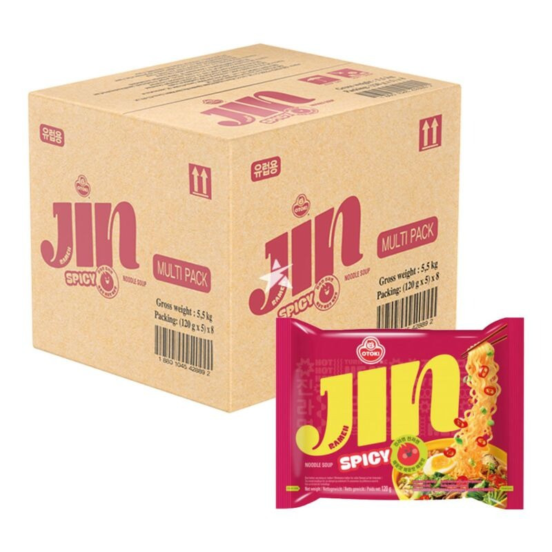 Ottogi Jin Ramen Spicy – Tüzes Marhahúsos Alaplé és Ruganyos Tészta, 40x120g Extra Gazdaságos Kiszerelés