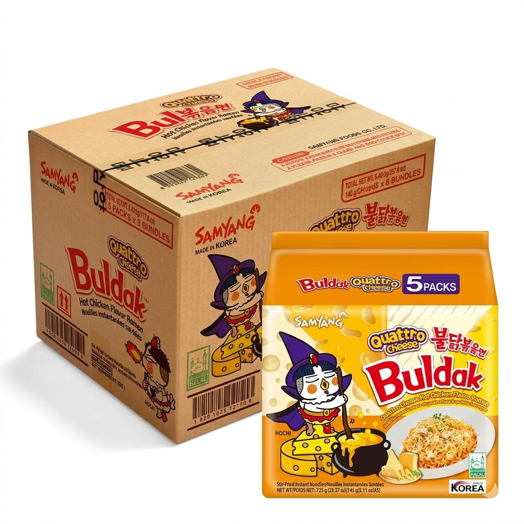 Samyang Buldak Quattro Cheese – A Négy Sajtos Krémes Csábítás és Tüzes Chili, 40x145g Extra Gazdaságos Kiszerelés