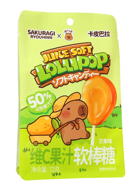 malátaszirup, ivóvíz, fehér cukor, mangópüré (10% hozzáadott, 50% az eredeti lére vonatkoztatva), karragén, pektin, színtelenített és savtalanított almalé, citromsav, nátrium-citrát, DL-almasav, nátrium-hexametafoszfát, C-vitamin, kálium-szorbát, karnaubaviasz, aroma.