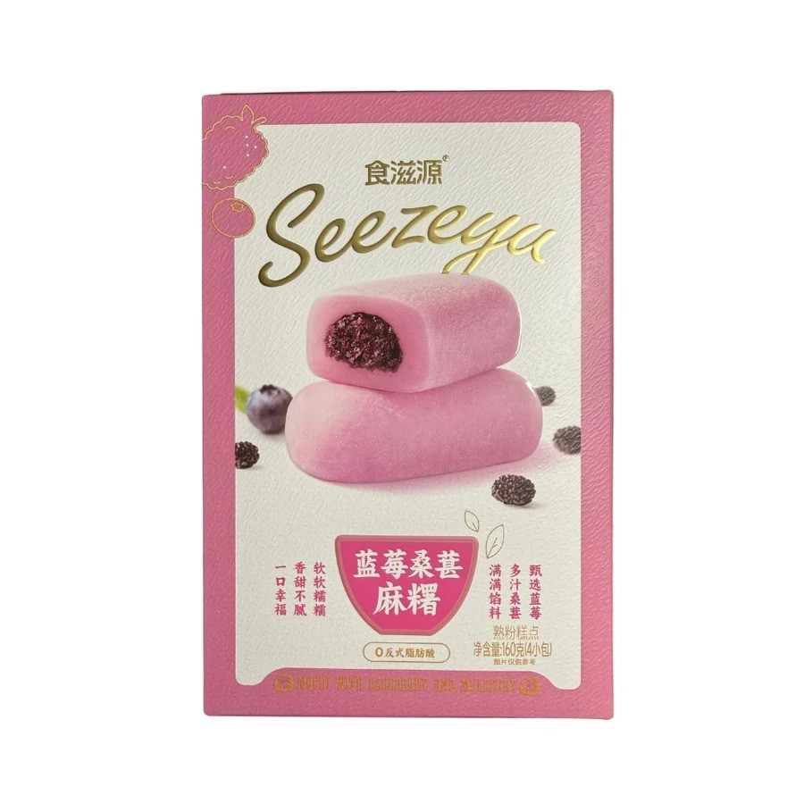 Élvezze a bogyós gyümölcsök frissítő erejét a Shiziyuan Mochi legújabb változatával! Ez a selymesen puha rizssütemény az édes kék áfonya és az egzotikus fekete eperfa (mulberry) harmonikus találkozása. A mochi rugalmas, ragacsos rizstésztája egy mélyvörös, gyümölcsös tölteléket rejt, amely tökéletes egyensúlyt teremt az édes és az enyhén fanyar jegyek között.